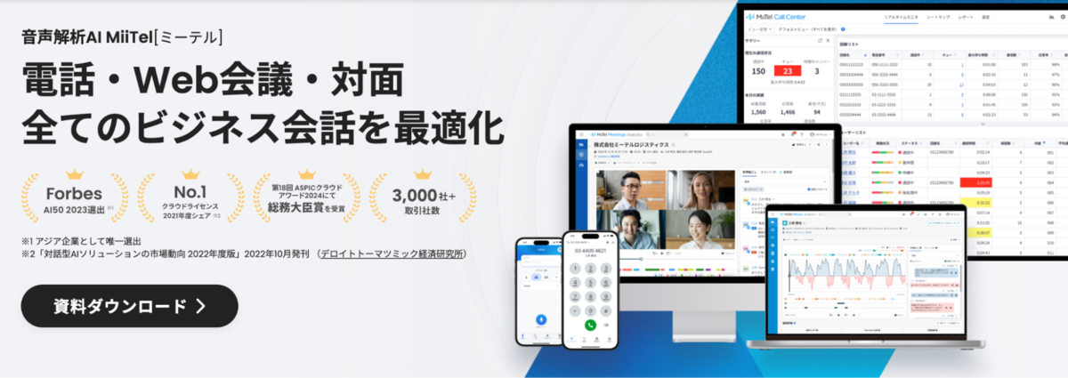 MiiTelは、IP電話と録音、文字起こし、音声解析が1つになったCTIツールです。