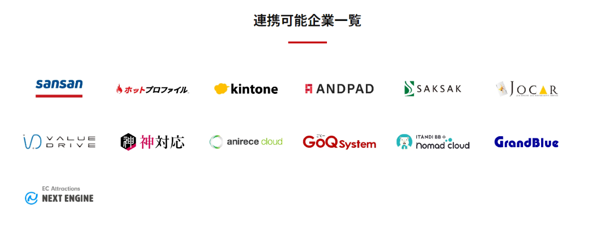 すべての外部システムと連携できるわけではないため、連携できるシステムがあるか確かめておきたいところです。