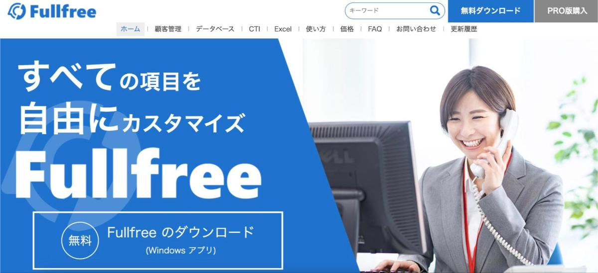 Fullfreeは、ダウンロードして自由に使える顧客管理ソフトです。CTIとしての活用もできます。