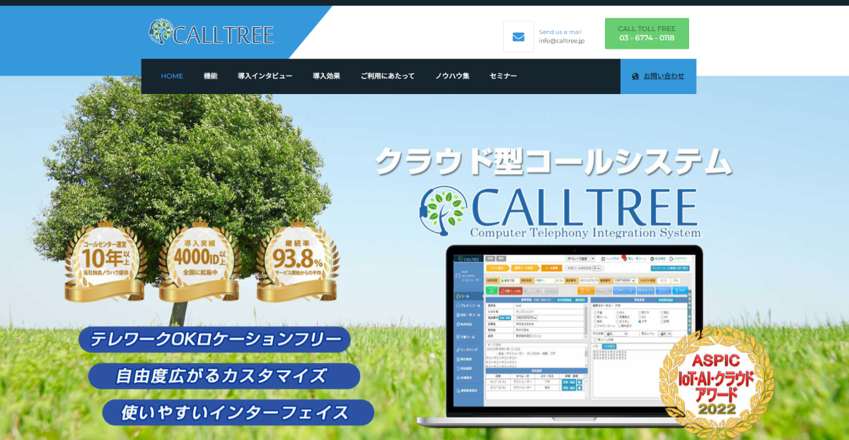 CALLTREEは、売上を確実に上げるためのアウトバウンド型CTIシステムです。 クラウド型システムを採用しているので、自社システムの構築不要でCTI環境を整備できます。