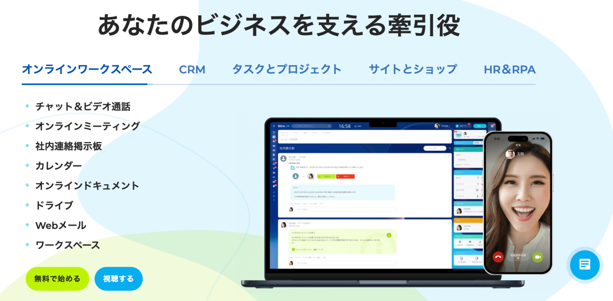 Bitrix24は、CRMやタスク管理なども兼ねそろえたシステムです。
