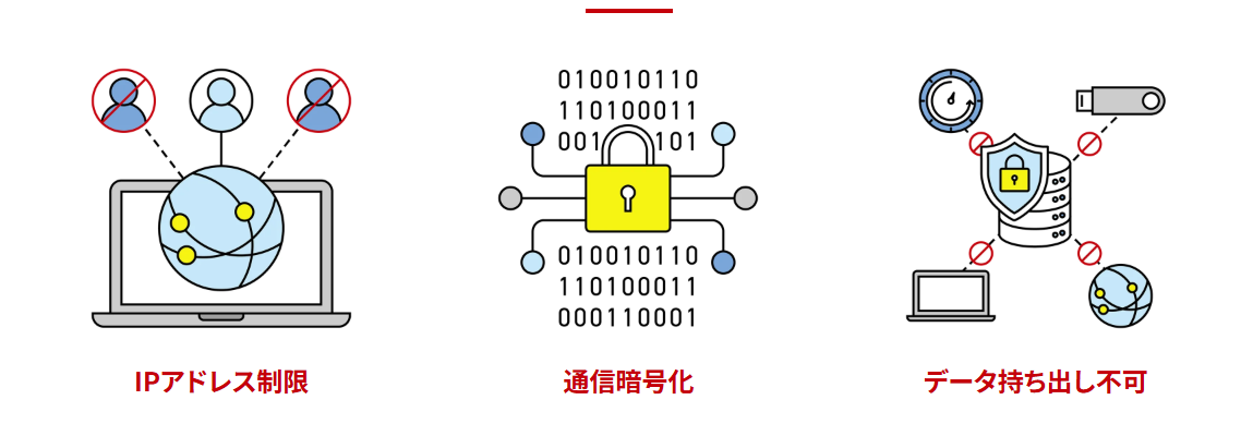 プライバシーマークの取得や、通信暗号化やIPアドレス制限など、セキュリティ対策も万全なので、ビジネスでも安心して利用できます。