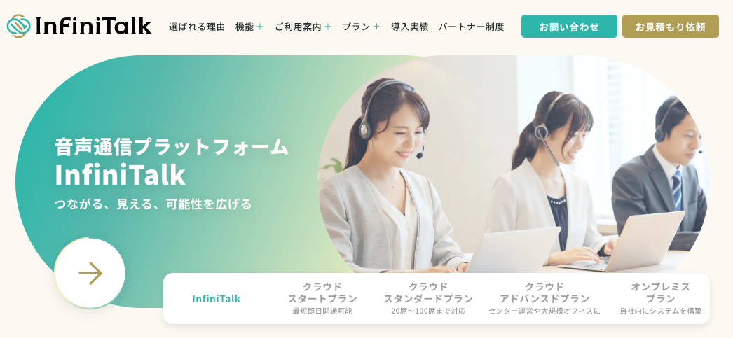 カスタマーサポートやコールセンター業務に特化した機能を多く搭載しているのが、InfiniTalkです。