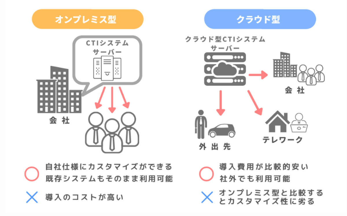 クラウド型は、サーバーやPBXなどのハードウェアを購入しなくてもよいため、初期費用を抑えられるメリットがあります。さらに、部署の移動や拠点の追加にも柔軟に対応でき、自社で設定できるシステムが多いです。