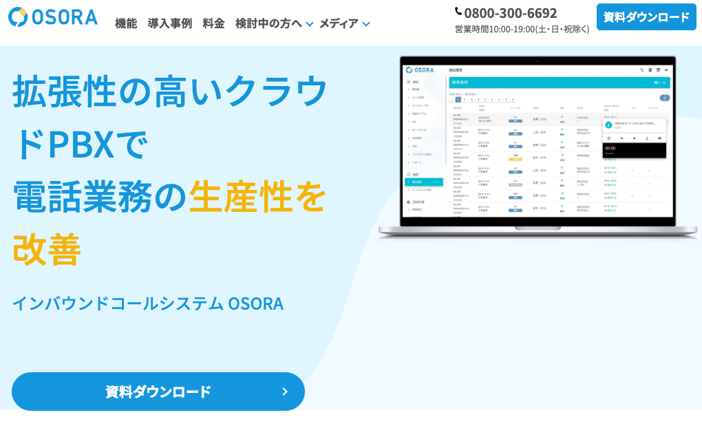 OSORAは、低コストながら柔軟なカスタマイズが可能なクラウド型CTIシステムです。