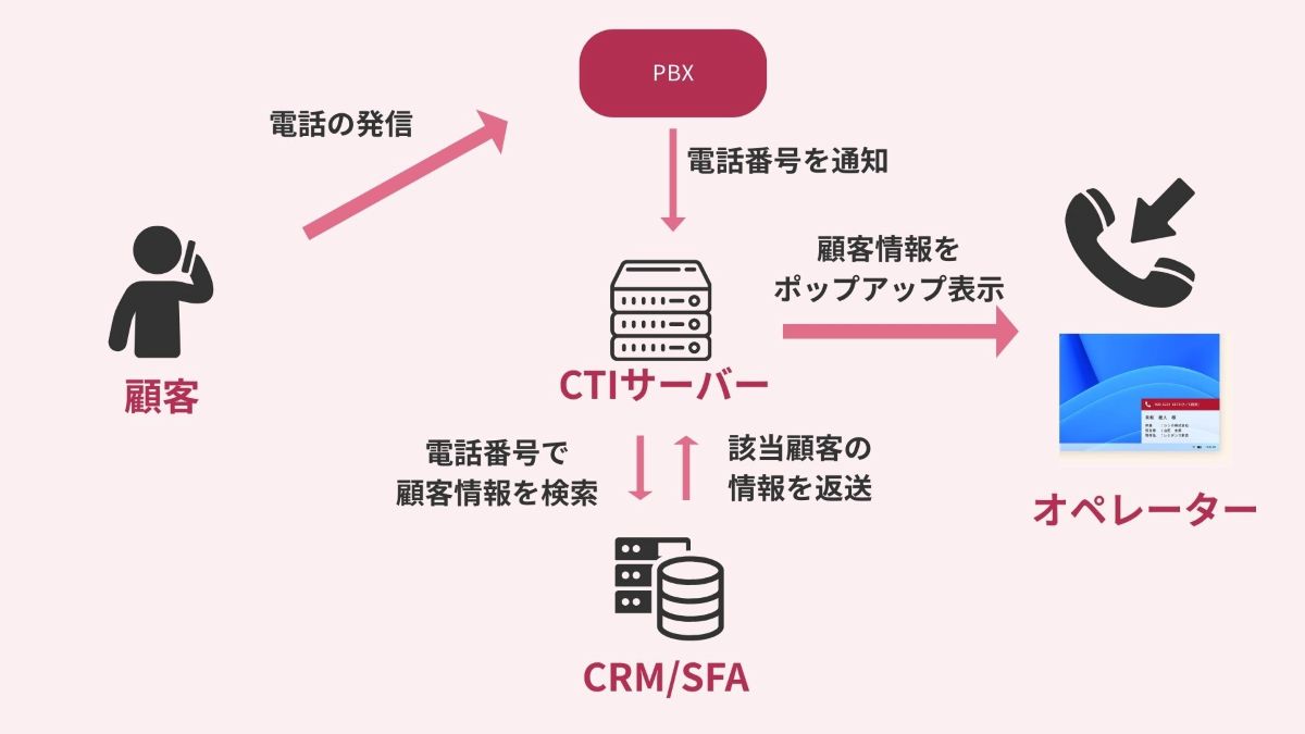 このように、CTIシステムは、電話がかかってきてから情報が表示されるまでの「橋渡し役」を担っています。