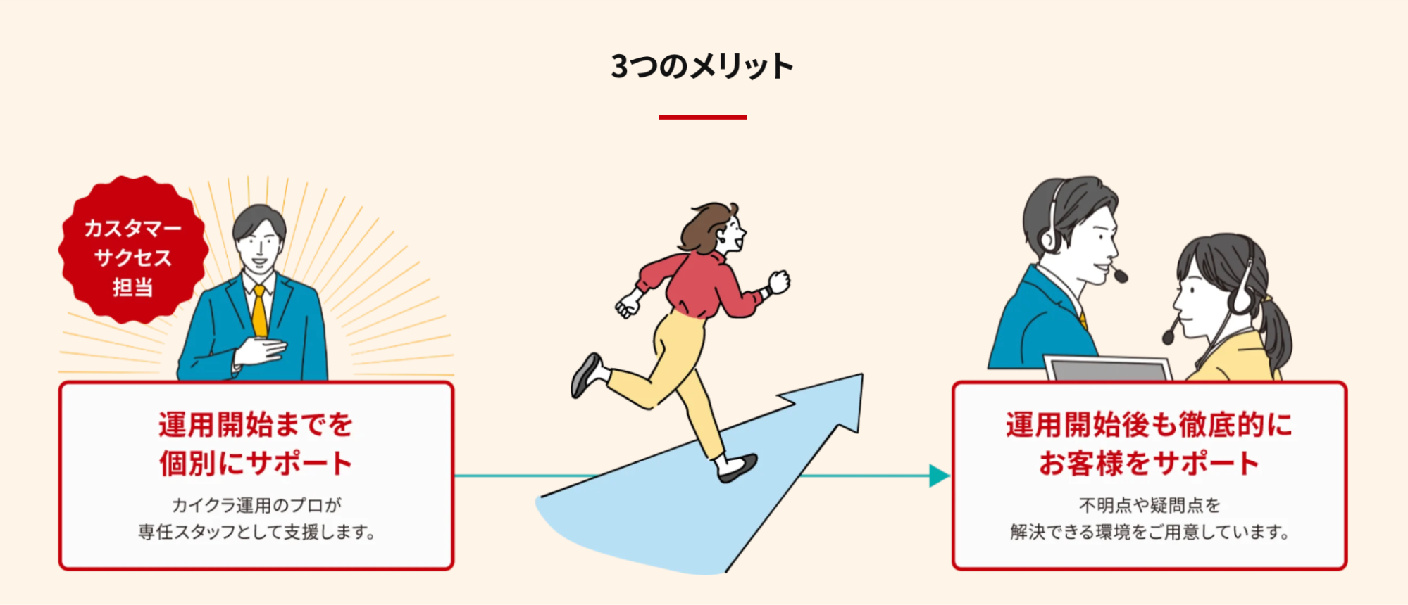 | サポートは手厚いか | △コールセンター向けの一般的なサポート |