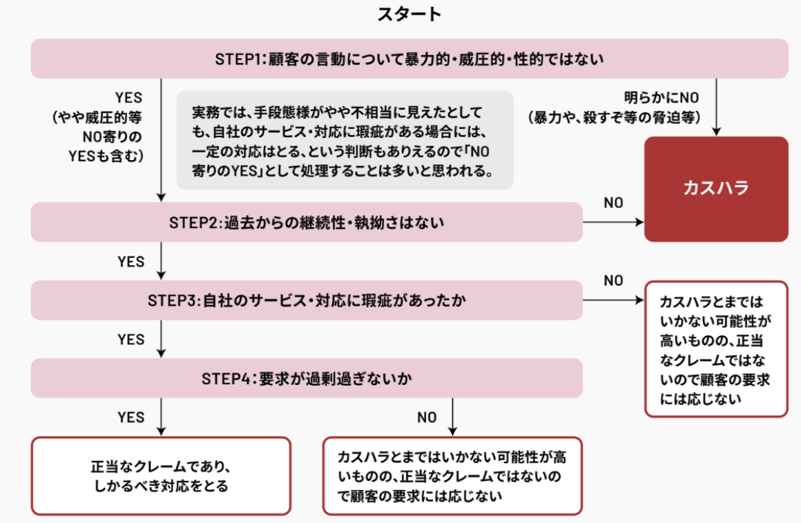クレームかカスハラか判断できない場合は、以下のフローチャートをご活用ください。