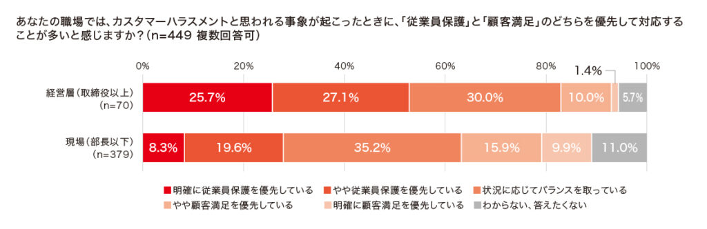 参考:「正当なクレーム」と「カスハラ」の線引きに約4割の企業が課題!現場を置き去りにした「従業員保護」-経営層と現場に深まる溝|株式会社シンカ