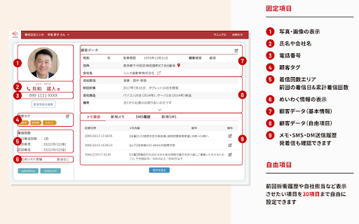 カイクラは、すべての通話を自動で録音するだけではなく、顧客情報を電話番号に紐づけて一元管理することも可能です。情報を一元管理することで、カスハラ行為の履歴がある顧客からの着信を電話に出る前に把握でき、カスハラ対策として有効です。