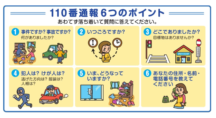 通報の際に伝えるべき情報は、「5W1H(誰が、いつ、どこで、何を、なぜ、どのように)」です。5W1Hにそって情報をまとめると、通報する側も通報を受ける警察側も状況を整理しやすくなります。