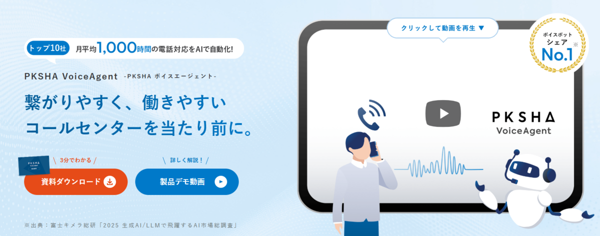 PKSHA VoiceAgentは、AIによる音声認識や自然言語処理を活用したサービスです。
