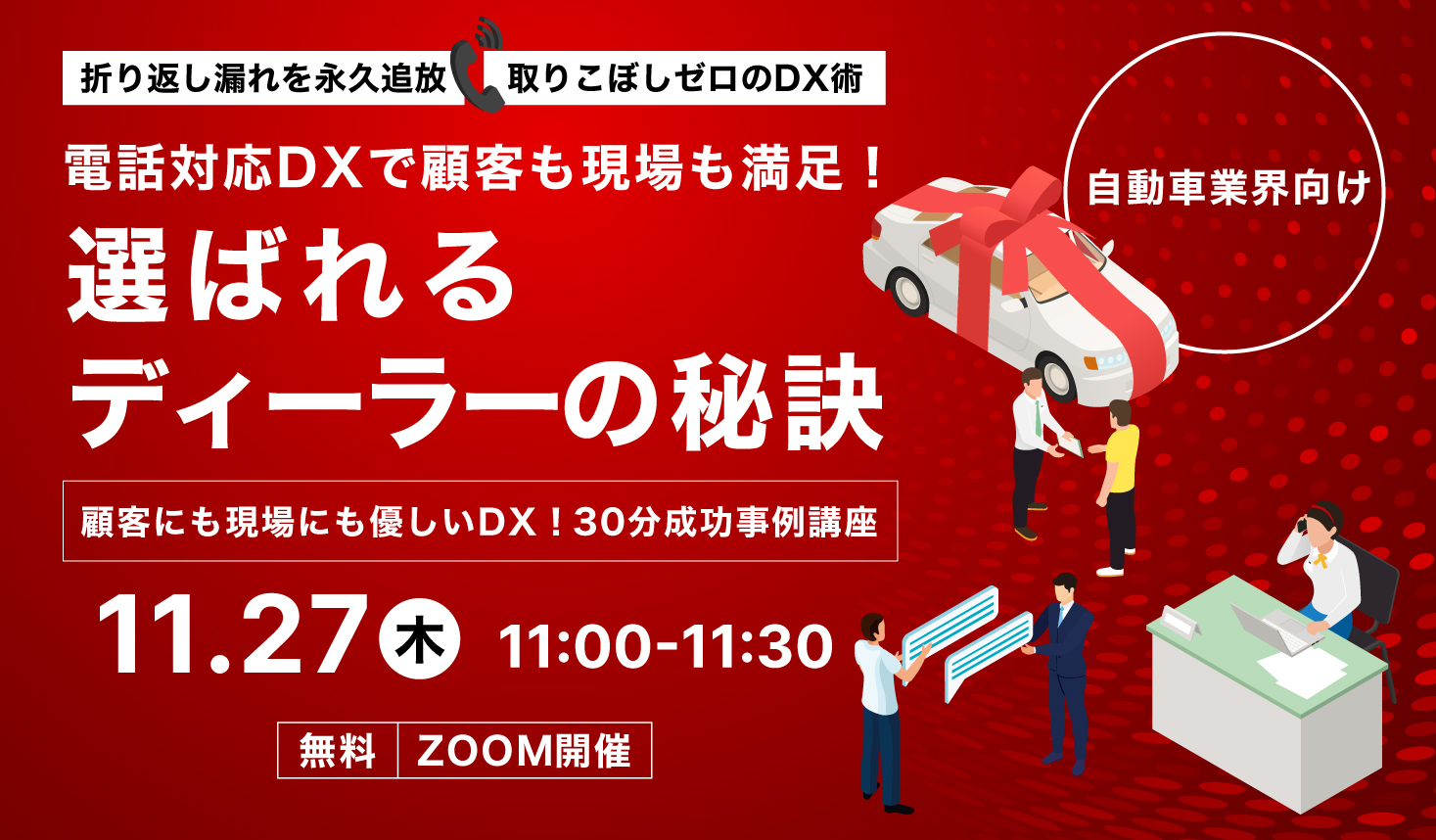 自動車ディーラー1,700店舗以上の導入支援で見えてきた、電話対応の最新課題・改善ポイント・効果が出る運用方法をわかりやすく紹介。